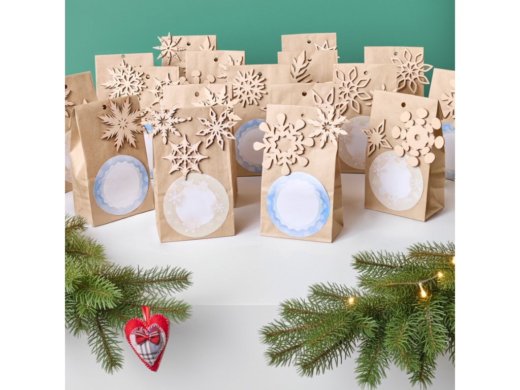 Složení obsahuje: sáčky– 31 ks, figurky sněhových vloček – 62 ks, samolepky – 62 ks.