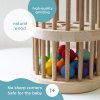 Hračka je vyrobena z lipového dřeva s příjemnou vůní a nemá žádné ostré hrany. Obrázek je aplikován pomocí kvalitního UV tisku na dřevo a chráněn vodním lakem BIOFA. Barevné kuličky jsou natřeny německým přírodním voskem BIOFA, který je bezpečný i pro malé děti. Upozorňujeme, že dřevo je citlivý materiál, který nereaguje dobře na vodu. Hračku proto neomývejte mýdlem, stačí ji opatrně otřít suchým nebo mírně vlhkým hadříkem.