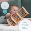 Kuličky vydává zvuk připomínající déšť. Stačí hračku převrátit a poslouchat, jak kuličky padají dolů. Tento zvuk stimuluje sluchové vnímání a probouzí zvědavost dítěte.