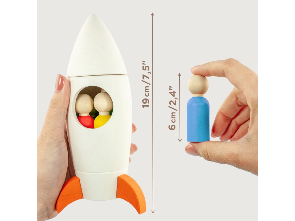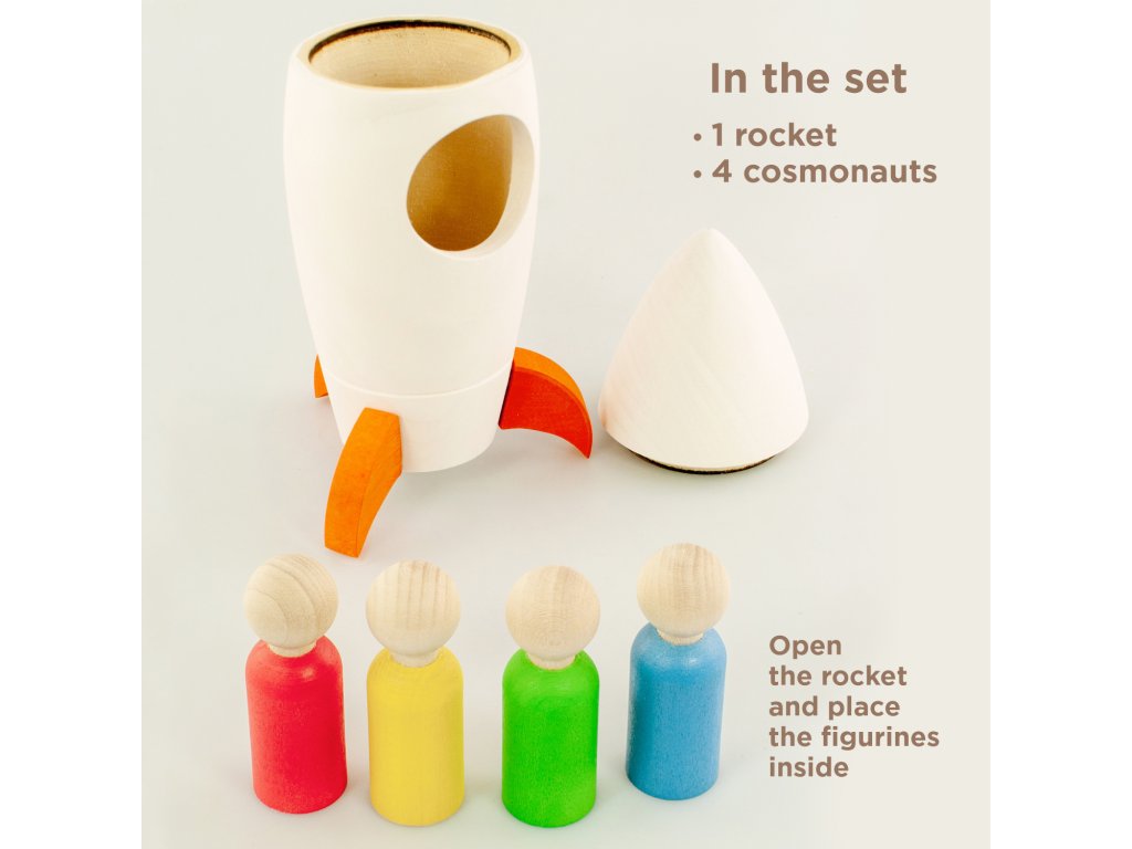 Zusammensetzung: Rakete – 1 Stück 19 cm hoch, kleine Astronauten – 4 Stück.