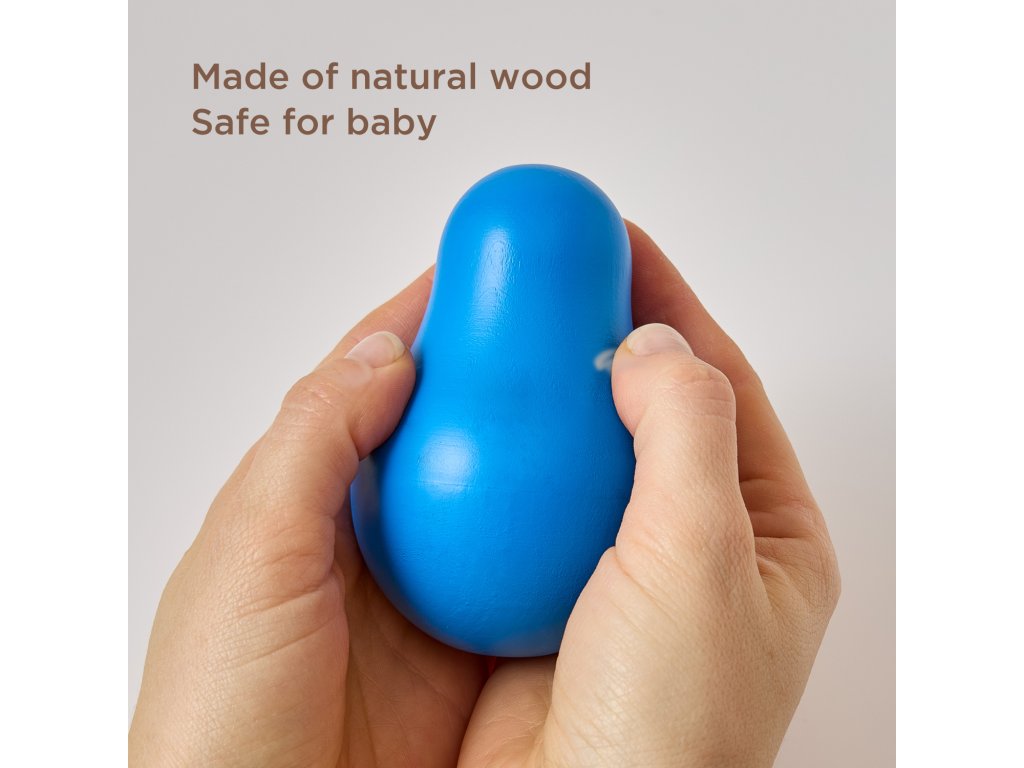 Montessori-Wackelspielzeug aus Holz – sicheres Spielzeug, das für Babys ab der Geburt geeignet ist. Es besteht aus Lindenholz und ist mit dem deutschen, für Kinderspielzeug zertifizierten BIOFA-Naturwachs gefärbt. Das Wachs ist sicher, auch wenn das Kind das Spielzeug in den Mund nimmt.