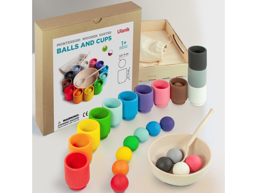 Montessori Holzspielzeug "Bälle in tassen" 3 cm