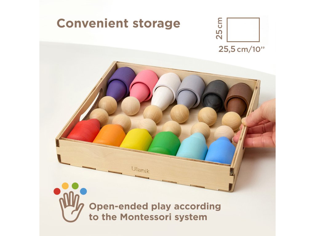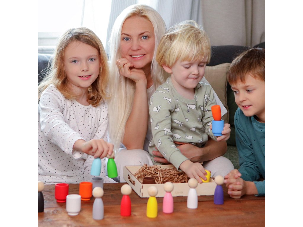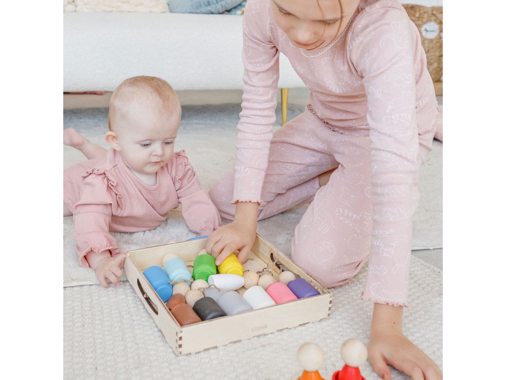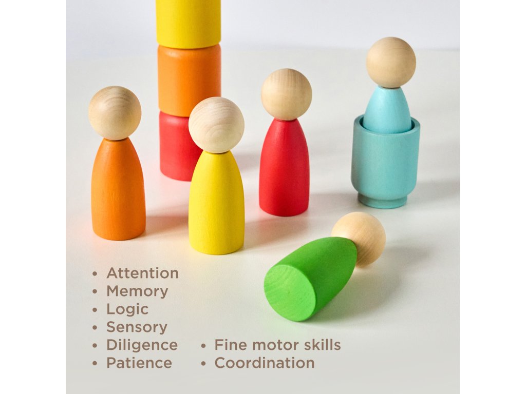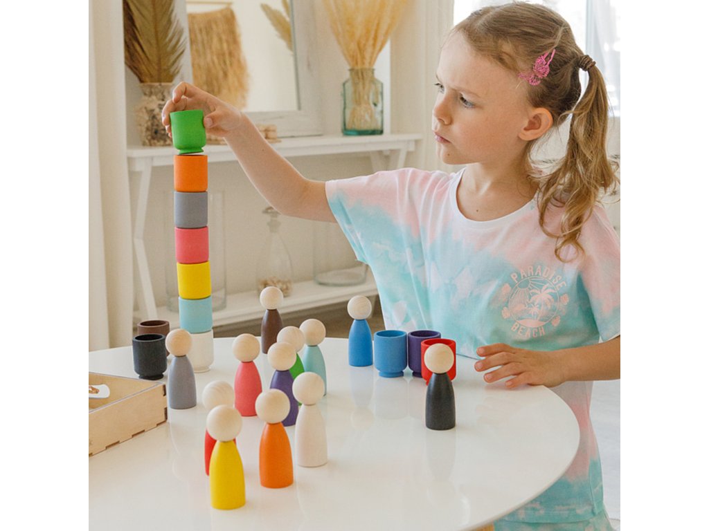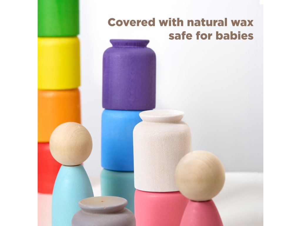 Die bunten Elemente sind mit natürlichem deutschem BIOFA-Wachs beschichtet, das über ein Zertifikat für Kinderspielzeug verfügt.