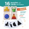 2. Das Kind muss anhand des Schattens das richtige Bild finden und umgekehrt den Schatten dem Bild zuordnen. Nehmen Sie zum Beispiel eine Karte mit einem Schatten und bitten Sie das Kind, eine Puzzle-Hälfte zu finden und zu bauen, die zur Karte passt.