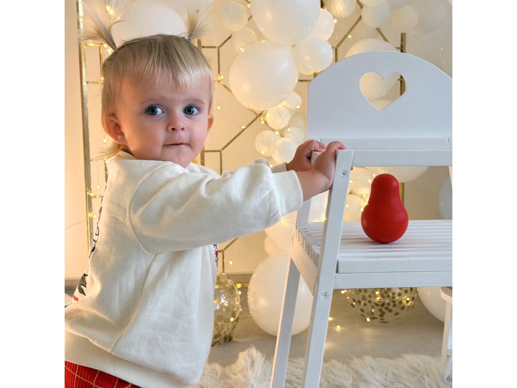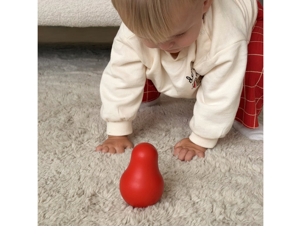 Montessori dřevěná houpací panenka – bezpečná hračka vhodná pro děti od narození. Vyrobena je z lipového dřeva a barvena německým přírodním voskem BIOFA, certifikovaným pro dětské hračky. Vosk je bezpečný i v případě, že dítě si hračku zkouší na zuby.