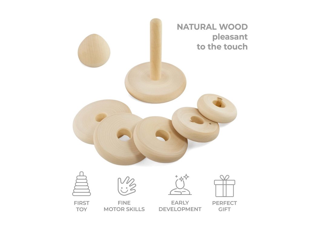 Složení pyramidy: základ, kulaté kroužky různých průměrů - 7 ks, 17 cm.