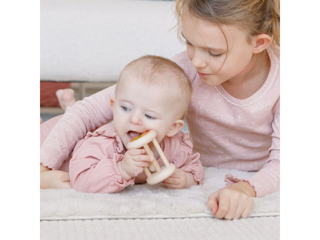 Please note: wood is a moisture-sensitive material, so it is not recommended to wash it — it's better to use a dry cloth to gently wipe the rattle.