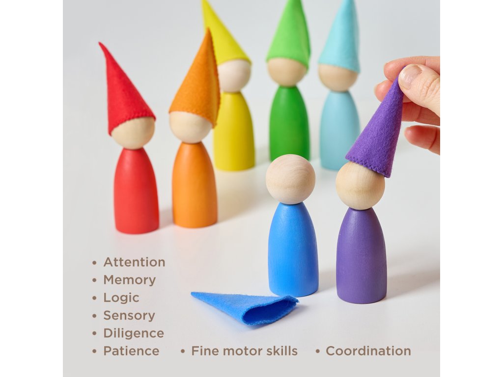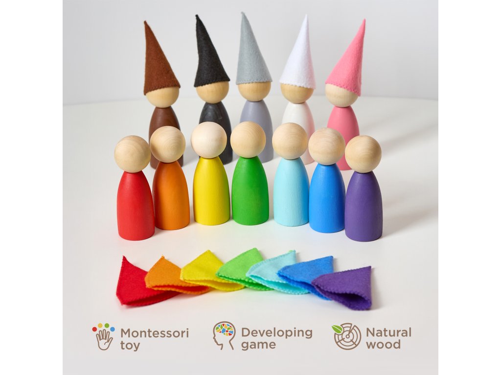 Large Peg Dolls with Hats Montessori Toy Wooden Sorter Game