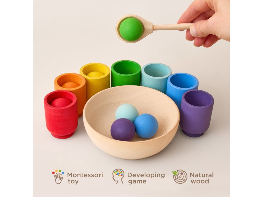 Rainbow Balls in Cups 3 cm Montessori Wooden Game