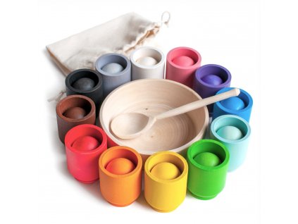 Montessori dřevěná hračka "Rainbow: balls in cups" 4 cm