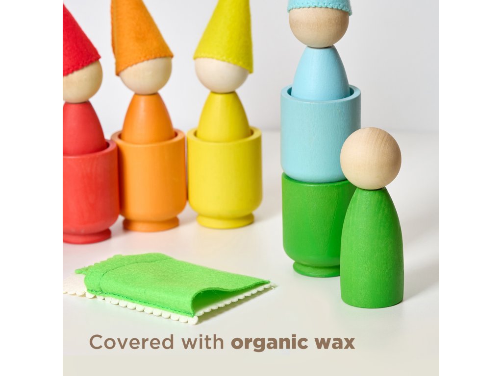 Barevné prvky jsou natřeny přírodním německým voskem BIOFA, který má certifikát pro dětské hračky. Vosk je bezpečný i pro batolata, která chtějí všechno vyzkoušet a ochutnat.