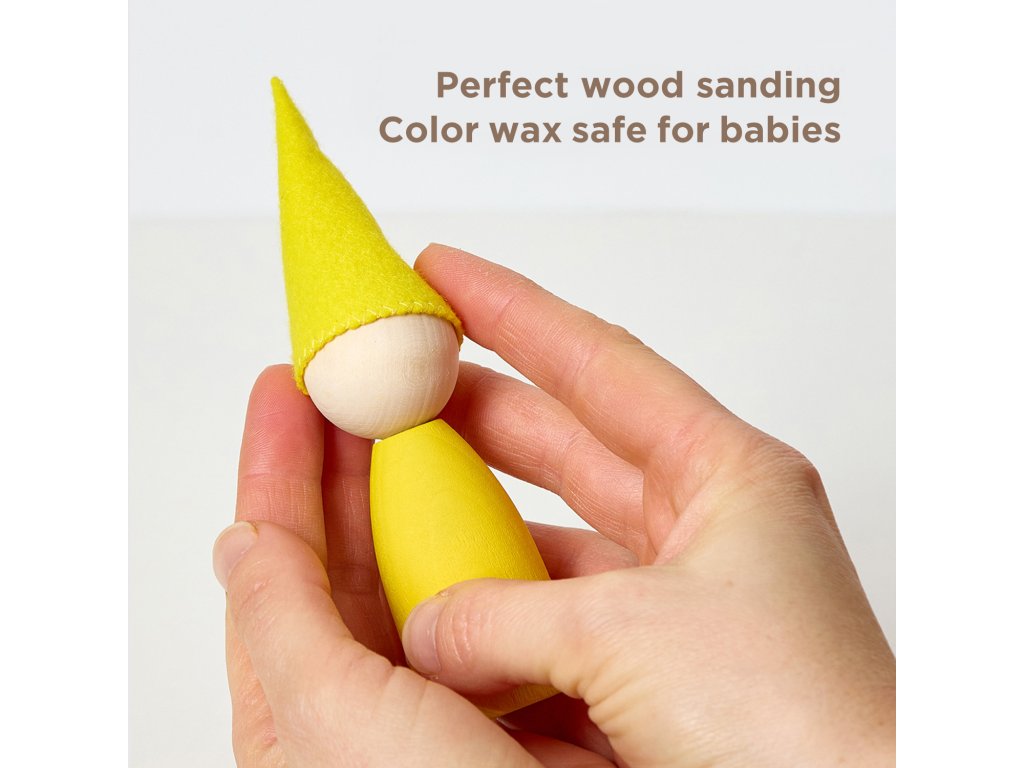 Barevné prvky jsou natřeny přírodním německým voskem BIOFA, který má certifikát pro dětské hračky. Vosk je bezpečný i pro batolata, která chtějí všechno vyzkoušet a ochutnat.