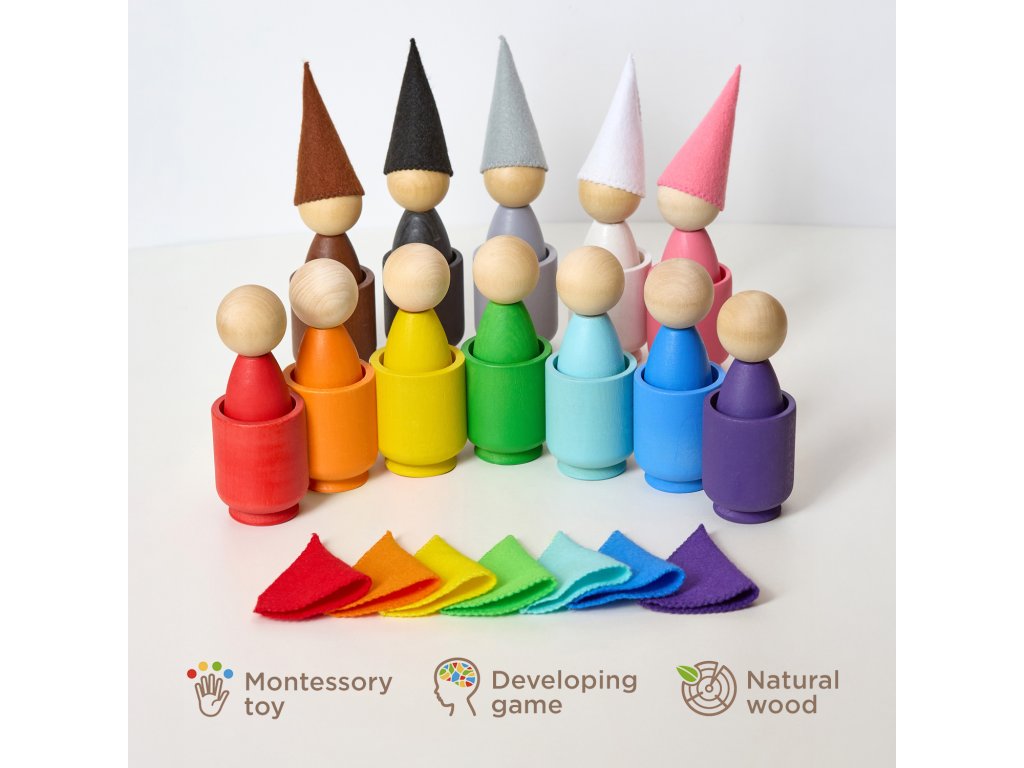 - 12 dřevěných panáčků (v=8.5 cm) + čepičky