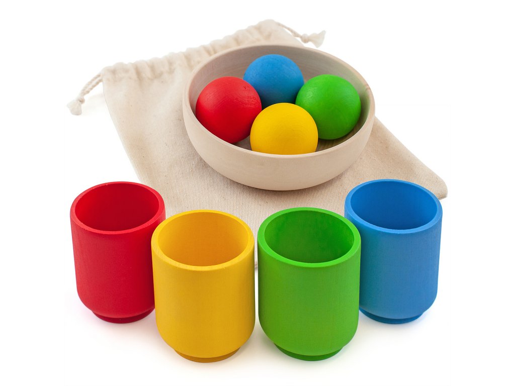 Montessori dřevěná hračka "Kuličky v kelímcích. Základní sada" 4 cm