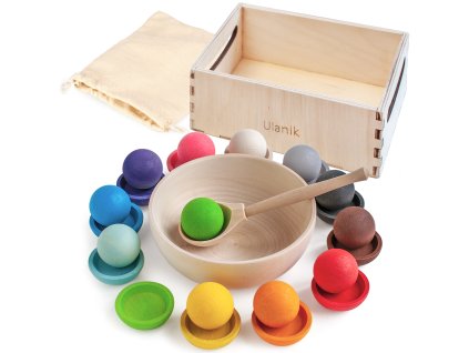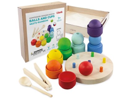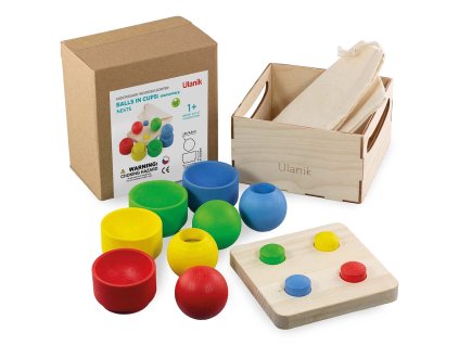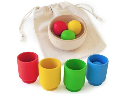Mnoho možností hraní. Kuličky můžete schovávat do kelímku a odhadovat velikost podle zvuku; stavět věže; studujte pojmy: nahoře nebo dole, uvnitř nebo venku.