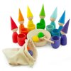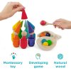 Montessori dřevěná hračka „Rainbow: Peg Dolls in Cups with Hats and Balls‟